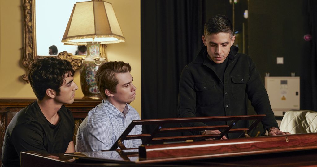 Featured image: Director Matthew López behind-the-scenes with Nicholas Galitzine as Prince Henry and Taylor Zakhar Perez as Alex Claremont-Diaz in Prime Video’s Red, White & Royal Blue. Photo Credit: ROB YOUNGSON