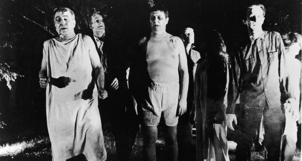 Featured image: A line of undead ‘zombies’ walk through a field in the night in a still from the film, ‘Night Of The Living Dead,’ directed by George Romero, 1968. (Photo by Pictorial Parade/Getty Images)