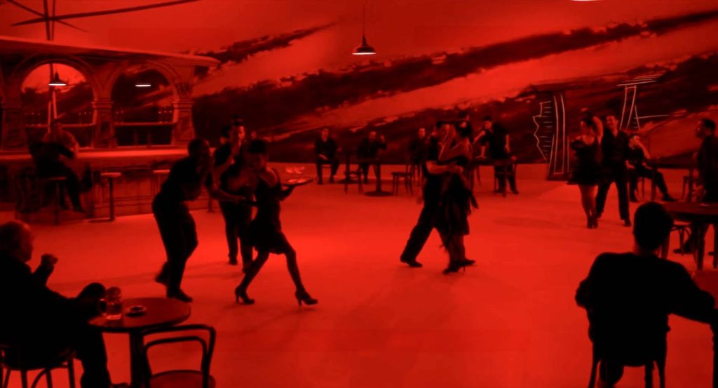 Because I was holding back. So, I modified the starting point when we introduce Jennifer Lopez’s character in her Buenos Aires boudoir with “Her Name is Aurora.” It’s Princess Blue and buttercream – nothing else. But it’s still vivid as hell. Then we follow that to the midpoint of this very colorful South American village. Then the palette slowly becomes more restrained again to the point where this number refers to one of my favorite Vincent Minelli sequences ever, called “Limehouse Blues,” from the 1945 movie Ziegfeld Follies. Our musical number, “Only in the Movies,” is kind of a dying man’s fever dream of his own life as if it were a Technicolor musical.