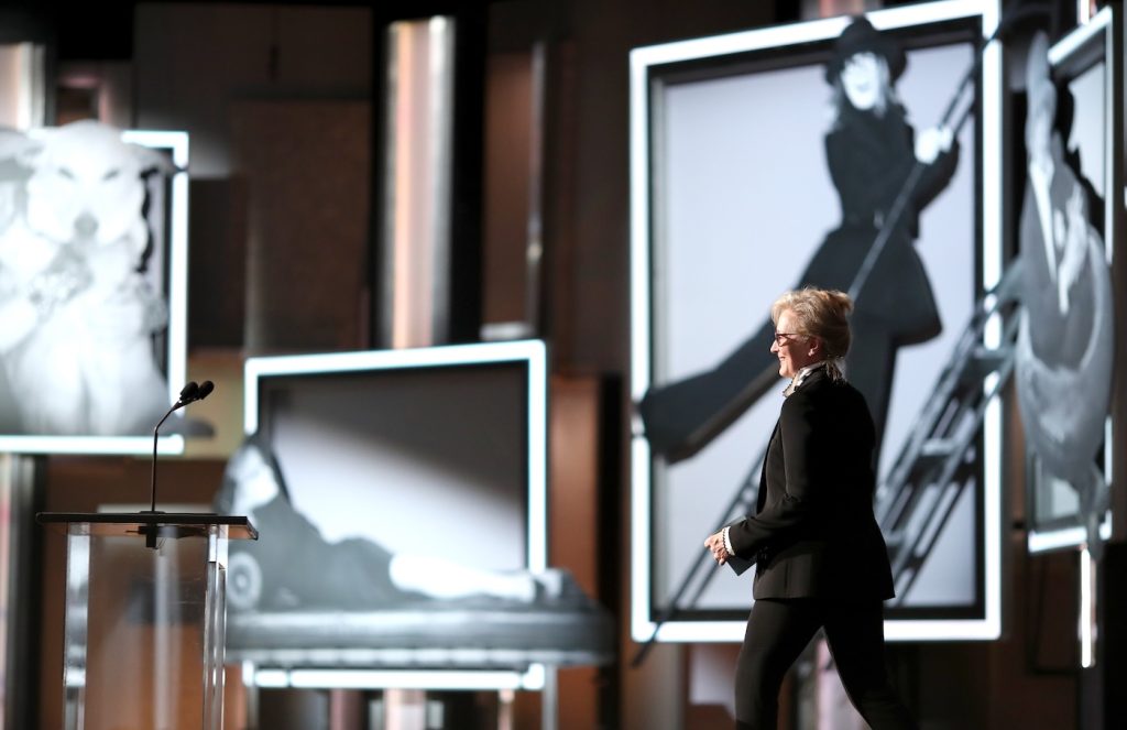 In her speech, Meryl Streep says, “I fell for Diane Keaton…with Annie Hall because she had the stream of consciousness of a hummingbird…She’s in flight. When she lights down, she stops your heart. She has given us so much happiness.”