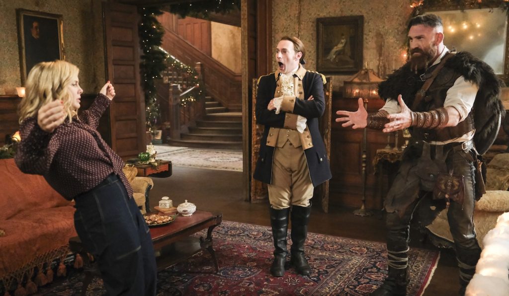 Whether they’re stuck on the property for eternity or merely passing through on the way to another spiritual realm, the through line for all of Ghosts’ ghosts is that they died where Woodstone Manor now stands. Thor (Devan Chandler Long), a Viking who came to explore present-day North America and was left behind by his shipmates a millennium ago, is the oldest of the core group stuck on the property. The newest is Trevor (Asher Grodman), a stockbroker who died from a drug-induced heart attack. Between the two, there’s a Lenape storyteller, a Continental Army officer, a Jazz Age lounge singer, a hippie, and Hetty (Rebecca Wisocky), Sam’s 19th-century ancestor and the first owner of Woodstone.