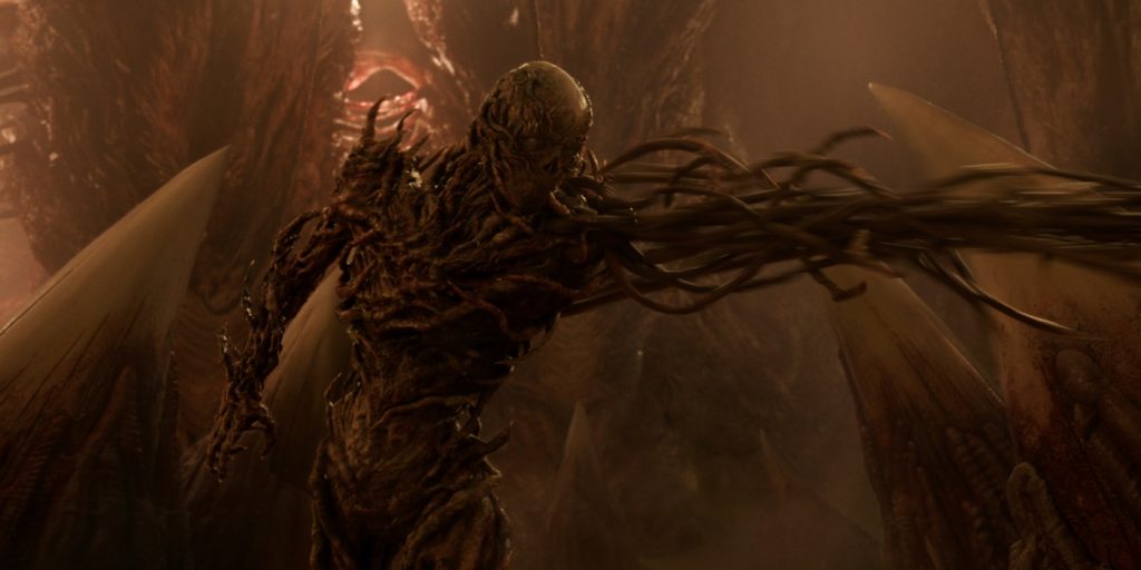 The final battle against the Mind Flayer in the Abyss is an epic clash. El tears an opening in its chest, jumping inside to fight Vecna while others fight from the ground – the creature’s inside becoming an enormous set build. “There was so much creative discussion about conceiving it. One of the concerns was how are the characters going to interact with something so huge. It needed to be big enough that you believe there’s this cavernous, almost cathedral-like abdomen space that the characters are in. And of course, it wanted to be proportioned similarly to the Mind Flayer,” explains Trujillo.