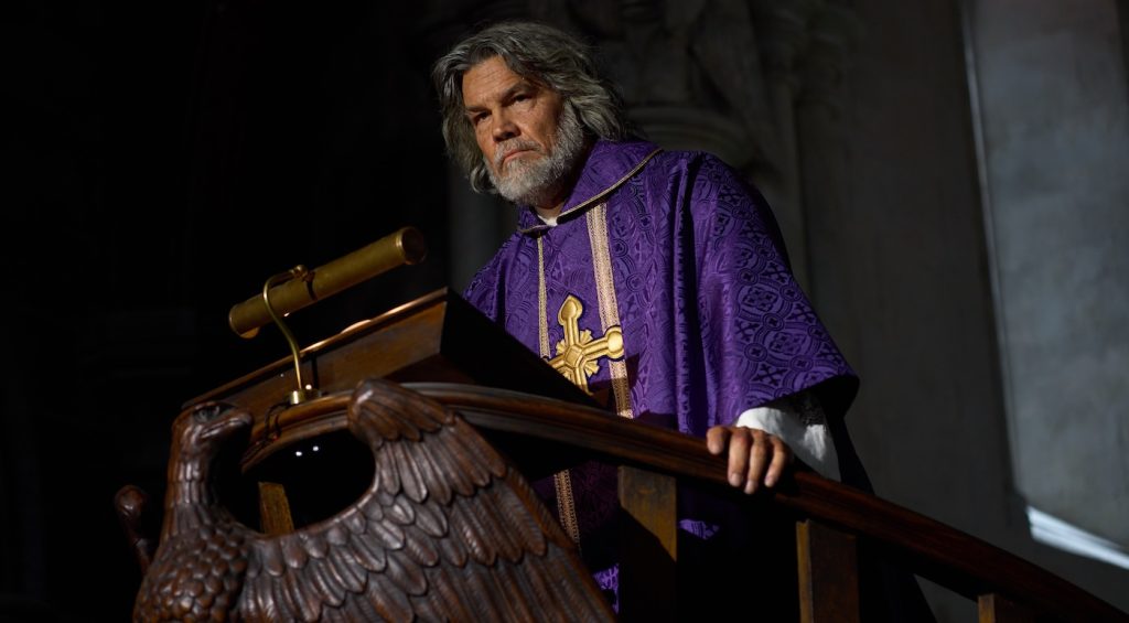As you mention, Benoit Blanc goes head-to-head with Josh O’Connor in the role of Reverend Jud Duplenticy.