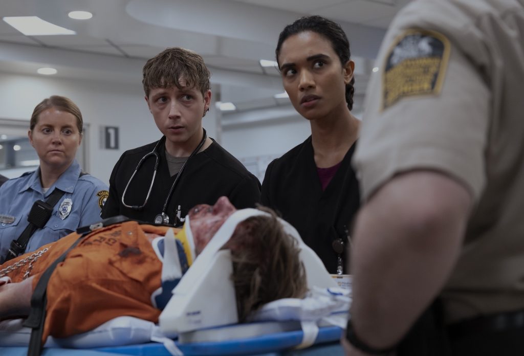 One particularly memorable scene involves a patient losing the tip of his finger, complete with graphic close-ups of the surgical repair. “Sometimes, extremities are harder to watch,” she admitted (and I happen to agree.) “In season one, we have something with an eye…the plastic work is absolutely incredible.” More importantly, the realism extends beyond shock value. It reinforces the stakes of the environment and deepens the audience’s emotional investment.