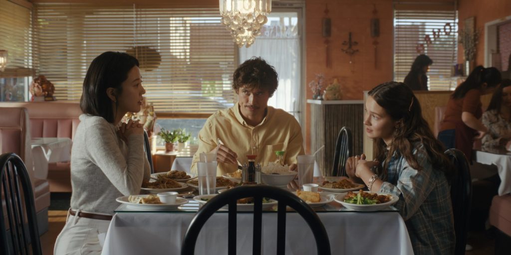Beef. (L to R) Seoyeon Jang as Eunice, Charles Melton as Austin Davis, Cailee Spaeny as Ashley Miller in episode 203 of Beef. Cr. © 2026