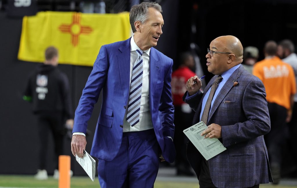 Thursday, I meet with the sideline team. Either Andrea Kramer for the first six years or Michele Tafoya for the next 11 years, and her producers. We identify the people she should be speaking to and the stories to pursue. We also do the initial coverage plan for replays and isolation [shots]. Then we’d fly out on Thursday night.