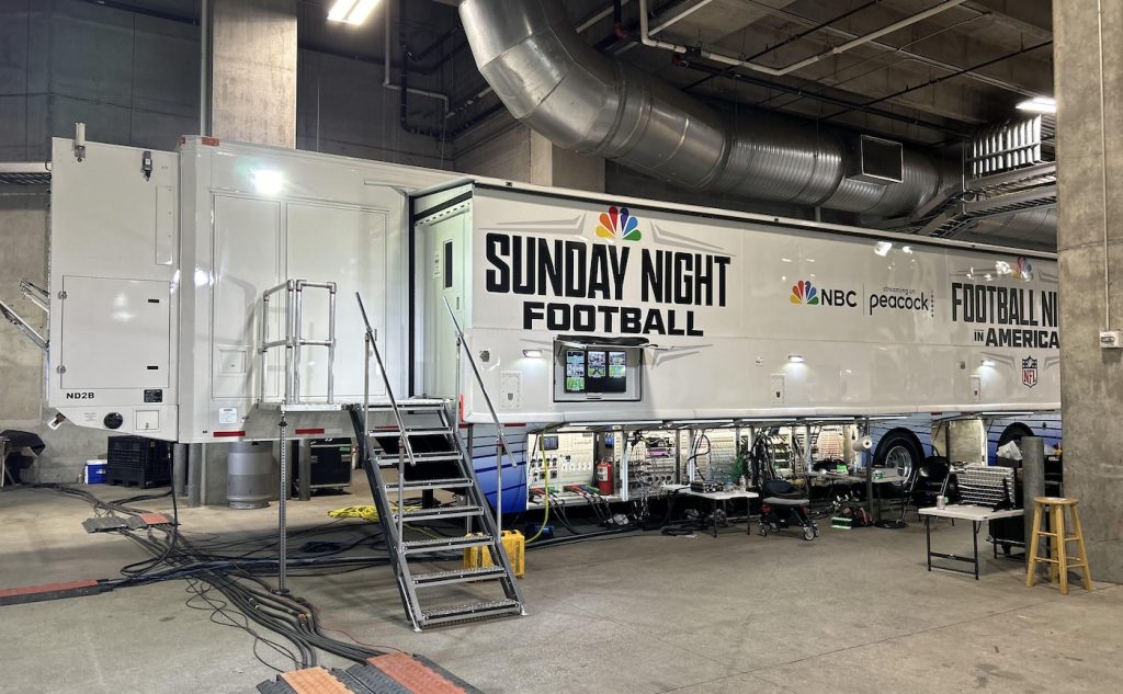 NBC‘s Sunday Night Football has been primetime television’s top-rated program for 15 consecutive years, and executive producer Fred Gaudelli plans to keep it that way. Of course, he has help. Lots of help. Every week, a crew of some 200 camera operators, editors, producers, replay operators, graphics artists, researchers, audio engineers, and other staffers converge on a major American city and set up shop in six or seven mobile studio trucks packed with state-of-the-art gear.