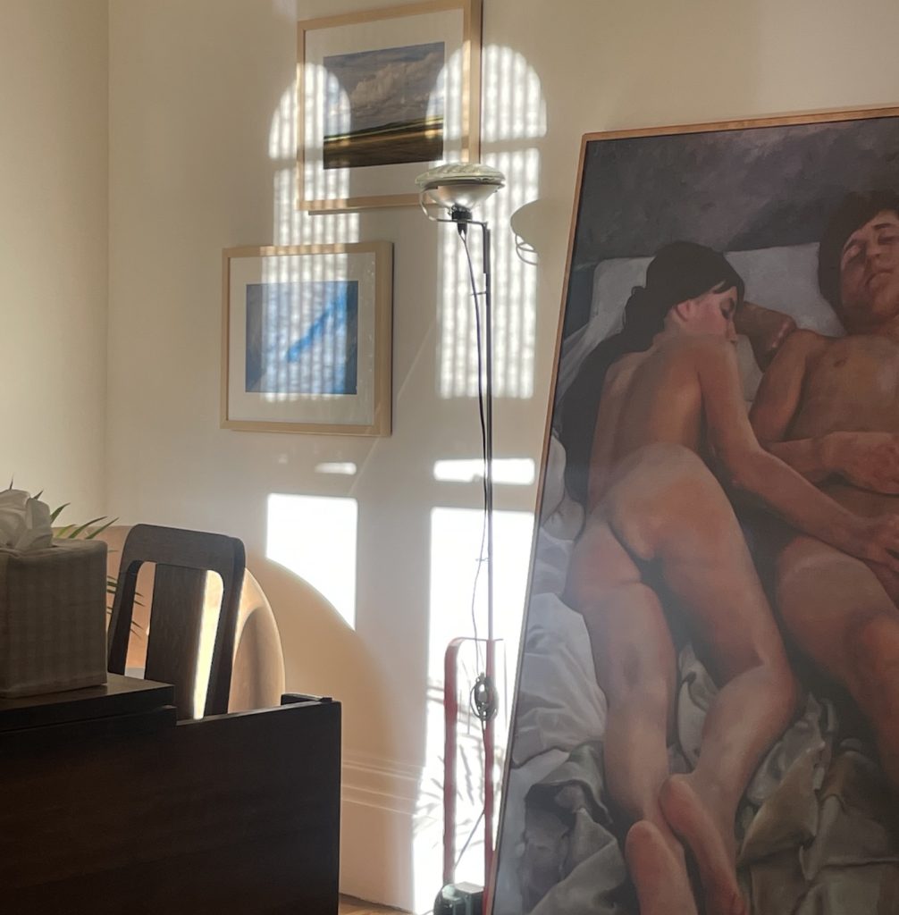 Key pieces, like a Knoll sofa and matching chairs, served as anchors, while thrifted finds and carefully selected books added texture. Unlike many productions, the team avoided generic prop rentals in favor of hand-selected items. “We really hand-picked every single book,” Mackenzie notes. “Same with the artwork: we wanted to dive into Charlie’s world as a curator.” Diving into that world meant collaborating with real artists, printing their work on canvas or linen, and constructing custom frames. The result is a home that feels deeply personal, authentic, and lived-in. Visually, the apartment’s architecture also played a crucial role. Its open layout, spiral staircase, and large windows allowed for the long, uninterrupted shots favored by Borgli. “It had these incredible sight lines,” Mackenzie says. “A lot of depth… which was so important.” That depth becomes emotionally significant, especially in moments of conflict. During the couple’s darkest emotional struggle, the apartment appears almost cavernous, amplifying the silence between the characters and heightening the tension.